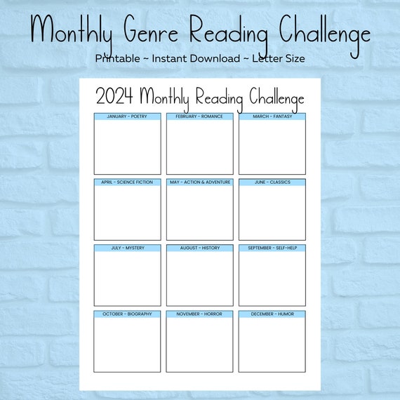 2024 Monthly Genre Reading Challenge Tracker Book Tracker Reading